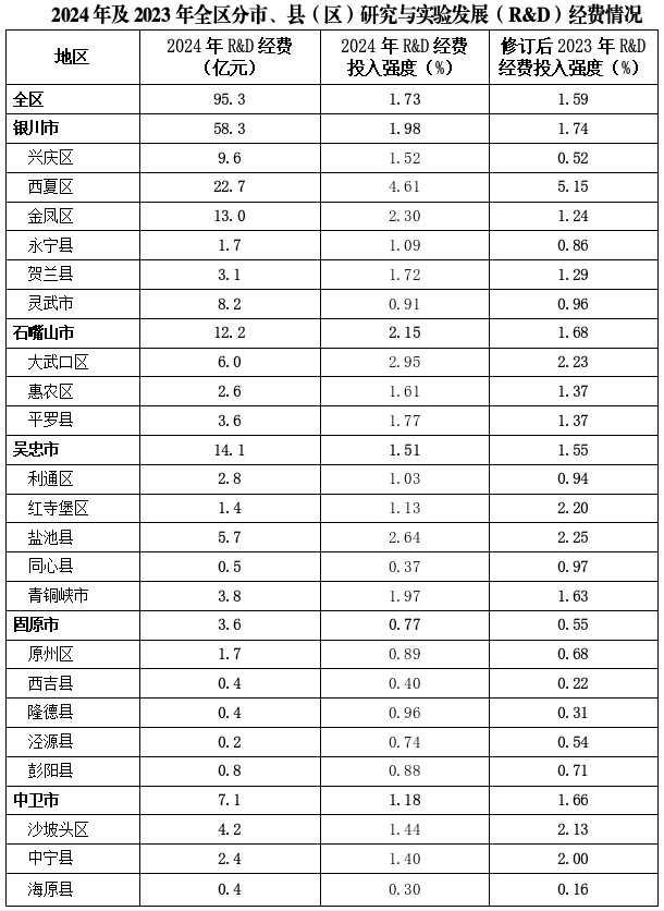 注:表内全区及各市、县(区)2023年R&D经费投入强度根据全区第五次全国经济普查后2023年GDP最终核实数情况修订。